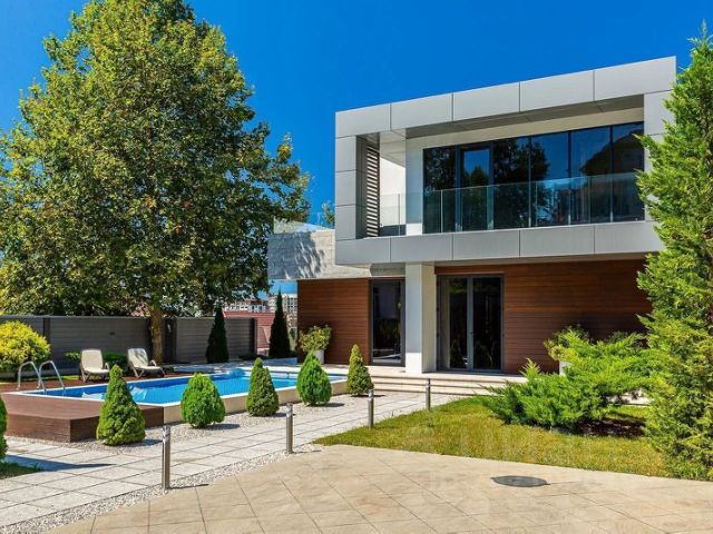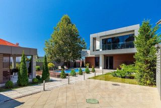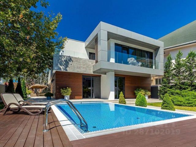 Современный, аккуратный, рациональный и продуманный до мелочей дом. Скатная крыша сложной планировки из мягкой кровли. Отделка дома короед, тонированные окна из темного пластика. В доме 3 этажа. Цоколь с бассейном, баней, комнатой отдыха и выходом на террасу; первый этаж с просторной кухней, столовой, гостиной и кабинетом; второй этаж с тремя спальнями. Санузлы на каждом этаже. Дизайнерский ремонт выполнен из качественных дорогих материалов: отделка стен выполнена структурной шпаклевкой, многоуровневые натяжные потолки с встроенным освещением, пол - плитка. Имеется мангальная зона и комплекс- коптильня. навес под одну машину.