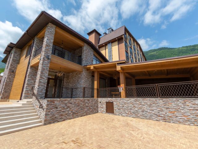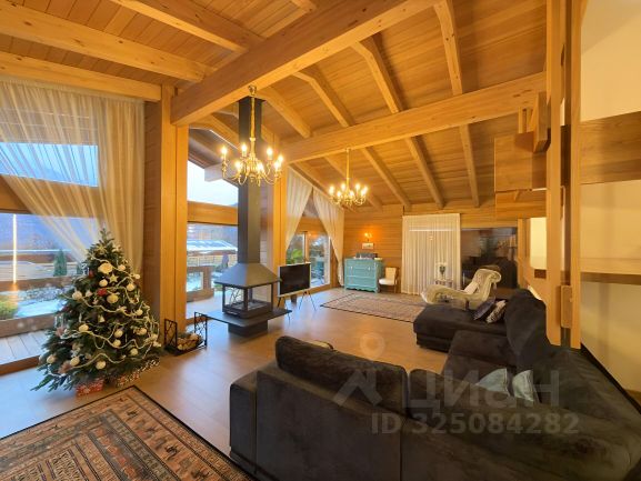 Горный дом дизайнерское трехэтажное шале из векового кедра в горах Красной Поляны, расположенное на высоте 780 м над уровнем моря. На цокольном этаже расположены: большой просторный гараж с хранилищем для лыж, прихожая, гостевая спальня, санузел с прачечной и основная оборудованная кухня. По широкой лестнице вы попадаете в гостиную со вторым светом, демонстрирующую стильное сочетание тематического декора привезённого с разных горных уголков мира. Гостиная включает в себя обеденную зону на 8 гостей, зону отдыха с мягким угловым диваном и большим тв, мини-кухню с барной стойкой и огромный дровяной камин. Днем гостиная пронизывается солнечными лучами, а вечером наполняется чувственным освещением с многообразием вариантов подсветки и мерцанием пламени камина, что делает атмосферу невероятно теплой и уютной. Панорамное остекление гостиной дарит захватывающий вид на кавказские горы. Выход из гостиной на террасу позволяет гостям расширить пространство и переместиться на свежий воздух к обеденному столу и качелям. Оборудованная на участке под навесом зона барбекю с большой барной стойкой дает возможность приготовить любимые блюда на мангале и приятно провести время за любимым напитком. Самый быстрый способ отвлечься от суеты повседневной жизни и восстановить силы, это пройти из гостиной в зону СПА, где 9-ти метровый бассейн, панорамное остекление с завораживающими видами, финская сауна и душевно подобранный декор позволит вам окунуться в атмосферу блаженства и релакса. Также на этом этаже расположена уютная гостевая спальня и ванная комната. Поднявшись выше по лестнице вы попадаете в уютный холл, объединяющий входы в детскую и основную спальни. Основная спальня имеет свою ванную комнату и балкон с панорамным видом на горы. Современный взгляд на деревенскую альпийскую эстетику отобразился в стенах этого шале, сделав его невероятно уютным и теплым. Продается дом на улице Ачишховская в поселке городского типа Красная Поляна в городе Сочи.