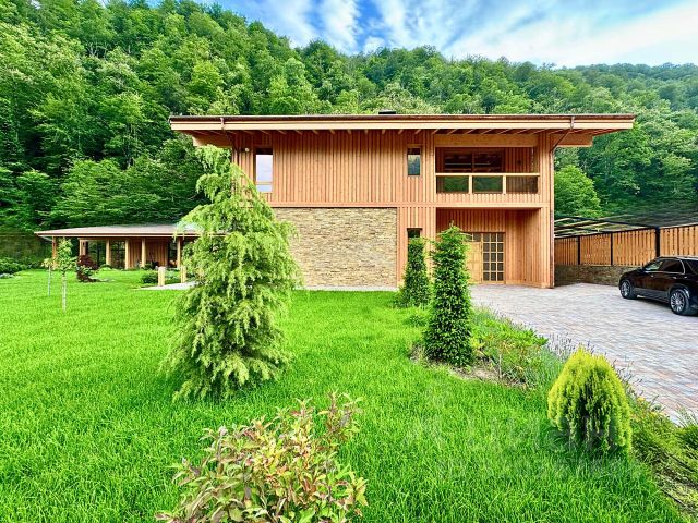 Элитный дом в живописных горах Красной Поляны предложение, от которого невозможно отказаться! Уникальное расположение, изысканная архитектура и все необходимые удобства для вашего комфорта это захватывающий объект! Чтобы по-настоящему насладиться всеми его достоинствами, вам необходимо приехать и увидеть его собственными глазами. Пока же предлагаем виртуальное знакомство. Вилла идеально сочетается с окружающей природой, воплощая в себе лучшие традиции шале-стиля. Территория вокруг дома и его ландшафтный дизайн дополняют его внешнюю эстетику. Однако, чтобы получить эстетическое удовлетворение от наблюдения за произведением искусства, необходимо побывать лично. Интерьер особняка включает в себя гармоничное сочетание скандинавских мотивов и кантри-стиля. Пространство разделено следующим образом: На первом этаже находятся гостиная комната с камином, кухня-столовая, рабочий кабинет и гостевой санузел. На втором этаже располагаются три спальни с санузлами и гардеробными. Одна из спален является двухуровневой. Абсолютно вся мебель и бытовая техника установлены. Заведены все необходимые коммуникационные и инженерные системы. Вы можете сразу отметить новоселье после покупки! Также установлены камеры видеонаблюдения, а также системы охраны и пожарной сигнализации. Жизнь в горах это идеальное сочетание развитой инфраструктуры и полной гармонии с природой. В непосредственной близости от дома расположены автобусная остановка и магазины. За 5 минут на автомобиле можно доехать до районного центра, где находятся школа и детский садик. За 15 минут вы сможете добраться до главных горнолыжных курортов "Горки Города" и "Розы Хутор". А по новой трассе до прибрежного кластера путь займет всего около 40 минут. Не упускайте шанс познакомиться с этим неповторимым жилищем и начать новую жизнь в горах Красной Поляны!