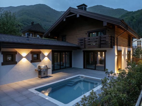 Продается современный дом в Красной Поляне Просторный и стильный дом в живописном месте у подножия гор. Отлично подойдет для постоянного проживания или отдыха. Преимущества: Свободная планировка — можно обустроить 4 мастер-спальни Бассейн во дворе Место под баню Навес на 2 автомобиля Качественные отделочные материалы, красивое сочетание дерева и светлого фасада Просторная терраса и балкон с видом на горы Расположение: Дом находится на центральной улице Красной Поляны — рядом магазины, кафе, транспорт и горнолыжные подъемники. Дом готов к заселению — остается только реализовать ваше видение интерьера. Звоните, чтобы договориться о просмотре и узнать больше!