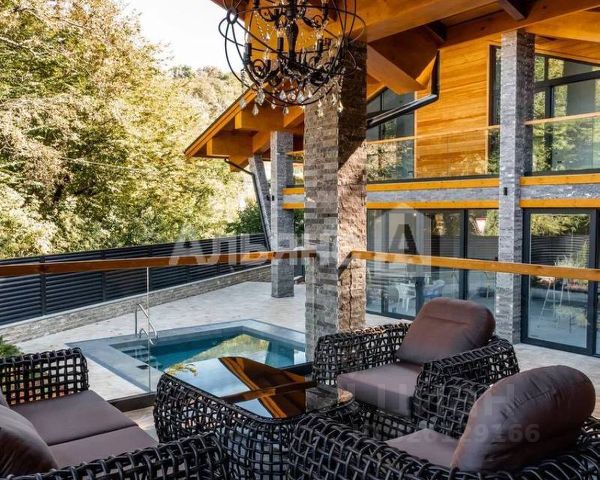 Номер в базе компании: 293745. Предлагаем эксклюзивный объект: дом + гостевой дом на 8 сотках с бассейном в Красной Поляне. Дом с ремонтом, документы готовы к продаже. Характеристики Основной дом 180 кв.м, выполнен дизайнерским ремонтом. 1 этаж: кухня-гостиная, ванная комната. 2 этаж: 3 спальни, гардеробная, ванная комната. А также 125 кв.м гостевой дом. Цокольный этаж с ремонтом. 1 этаж кухня-гостиная, душевая, санузел, русская баня на дровах. Выполнен дизайнерский ремонт. На участке есть баня и бассейн. Окна ALUMIL, ALUTECH. Отделка натуральный камнь: мрамор, травертин, доломит. Так же для фасада был использован планкен из лиственницы. Мягкая кровля Каер. Бассейн с подогревом, подсветкой. Ландшафтный дизайн с авто-поливом. Видео наблюдение, зона барбекю. Коммуникации: природный газ, электричество 30кВт.ч, своя вода, канализация ЛОС. Расположен на 8 сотках земли. Расположение Локация позволяет как с комфортом проживать самому, так и использовать объект в качестве инвестиционного. Спрос на аренду сильно превышает предложение.