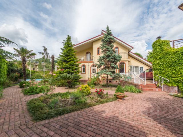Не ФЕЙК. Продается реальный 3-х этажный дом общей площадью 250 кв. м. Дом блочный, обложен кирпичом, никакие землетрясения не страшны, что немаловажно для сейсмически опасной зоны Сочи. На 1-м этаже расположены; изолированная 1-комнатная квартира, комната 20 кв. м., кухня, с/у, душ, с отдельным входом. Отдельная изолированная квартира-студия со своей кухней, с/у, душем и прихожей и своей зоной отдыха во дворе. Центральный вход в дом ведет в прихожую, откуда лестница на 2-й этаж, а также вход в столовую, на кухню и вторым выходом в зону барбекью и в котельную. С первого этажа капитальная лестница на веранду. 2-й этаж; прихожая, спальня 14 кв.м., ванная комната и с/у, комната с выходом на веранду, отдельная изолированная комната 18 кв. м., со своей кухней, с/у и душем, с выходом на террасу 9 кв. м., веранда 25 кв. м., на которой большой стол для приема гостей, качели и шезлонгом. 3-й этаж; комната отдыха 15 кв.м. и две спальные комнаты по 21 кв. м. каждая. Отдельно стоящий 2-х этажный гостевой домик. На 1-м этаже подсобные помещения. На 2-м этаже 1-комнатная квартира с двумя выходами во двор и на улицу, балкон, комната 15 кв. м., столовая, кухня, с/у, душ. В доме центральные газо, водо и электроснабжение. Дом расположен на земельном участке 8 соток, на котором растут декоративные, плодовые деревья и кустарники. Участок граничит с лесопарковой зоной. Тихое, уютное место, чистый горный воздух, в стороне от дороги, прекрасный вид на горы. Дом расположен в топовой локации, рядом с федеральной трассой, где вся необходимая инфраструктура, с транспортной развязкой во все стороны Сочи и непосредственной близостью к морю 15 минут и до ж/д вокзала 10 минут на машине. 3 изолированные квартиры в доме и гостевой домик можно использовать как для большой семьи, так и для приема гостей и сдачи в аренду