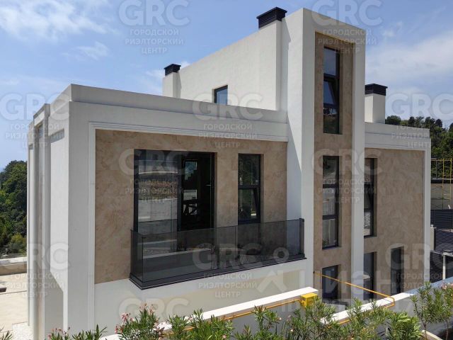 Фасад здания дополнительно утеплён снаружи плитами Технониколь, оштукатурены "короедом" и облицованы фотокерамическими панелями под натуральное дерево светло-коричневого цвета. Создан эффект, т.н. термоса: летом в доме прохладно, а зимой тепло. Окна большие, панорамные в алюминиевом профиле с защитным анодированным покрытием от ультрафиолетовых лучей и радиации - комнаты несильно будут нагреваться в солнечную погоду, которая в Сочи длится более 300 дней в году.
