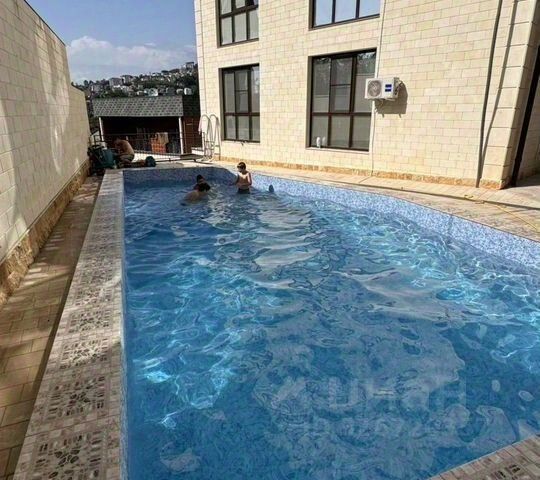 Участок включает площадку для нескольких машин, террасу для отдыха, барбекю, душевую, есть открытый переливной бассейн "Инфинити". По всей территории выполнено озеленение с автоматическим поливом, ночная подсветка клумб и фасада.