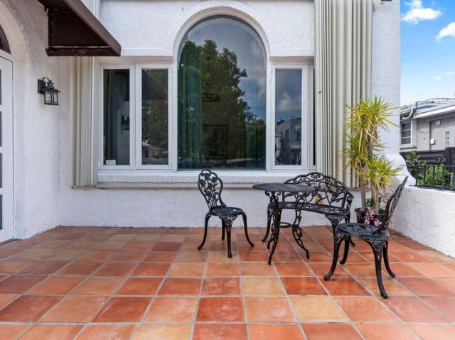Участок включает площадку для нескольких машин, террасу для отдыха, барбекю, душевую, есть открытый бассейн. По всей территории выполнено озеленение с автоматическим поливом, ночная подсветка клумб и фасада.