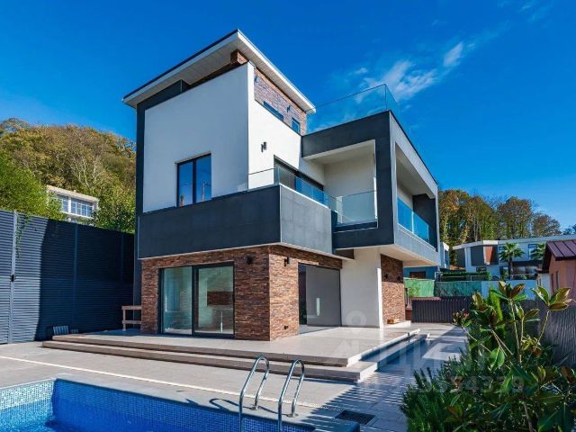Данный дом входит в состав закрытого коттеджного поселка, что находится в Хостинском районе на улице Ручей Видный. Общая его площадь составляет 470 квадратных метров, а продуманное планировочное решение делает его просто идеальнейшим вариантом для больших и дружных семей, которые действительно ценят свободу своего пространства! Привлекательная архитектура и стильный ремонт Архитектура виллы самым идеальным образом вписана в общий ансамбль застройки посёлка. Красивый дизайн ландшафта придомовой территории отлично дополняет общую стилистику дома, подчеркивает его красоту, изысканность! Дом спроектирован таким образом, что все комнаты здесь являются видовыми! Из окон отлично просматривается морская панорама, а также знаменитая хостинская бухта. Внутри выполнен новый дизайнерский ремонт, осуществлена разводка всех коммуникаций и проводки. Очень красивая и удобная лестница, расположенная внутри дома. Интерьер сочетает в себе элементы средиземноморской тематики и минимализм. Дизайнеры продумали все: начиная от общей концепции внутреннего убранства до организации зон хранения! Все, что нужно для комфортного отдыха в Сочи Вилла располагает большим земельным участком, на котором благоустроены зоны для отдыха. Перед входной группой располагается большой бассейн с местом для принятия солнечных ванн. Ландшафтный дизайн придомовой территории подчеркивает прелесть южных субтропиков. Инфраструктуру самого коттеджного поселка составляют следующие объекты: Теннисный корт; Гостевой паркинг; Зоны для отдыха и пеших прогулок; Места для семейного отдыха. Если Вы хотите увидеть этот дом своими собственными глазами, то обязательно звоните!