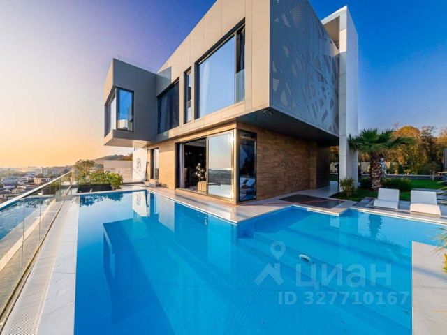 Новый дом в стиле High-Tech. Расположен в Сириусе - самом лучшем районе города Сочи. В доме три этажа. Общая площадь 300 м², земельный участок 4 сотки, в собственности. Все центральные коммуникации - газ, свет, вода, канализация. Продуманный двор, парковка на 3 машины, автоматические ворота и видеодомофон 4к (UHD), дорогой ландшафтный дизайн с подсветкой и автополивом (программируемый), зона барбекю с угольным и газовым мангалами, бассейн 10 метров в длину, лаунж-зона, видеонаблюдение 4к (UHD) по всему периметру участка, интернет (оптоволокно), 2 фонтана (излив и 2.5-метровый арочный водопад из авиационного алюминия). На участке установлена профессиональная система отведения ливневых вод, способная защитить участок и дом практически от любых природных катаклизмов. Дом строился с соблюдением всех строительных норм, на свайном фундаменте (как сам дом, так и бассейн). Доступ в дом по биометрическому замку. Внутри дома дизайнерский ремонт, мебель от самых известных брендов Италии и Европы, кухонная техника AEG, японские кондиционеры, высокие матрасы с памятью, дорогие телевизоры, ковры, декор, панно из стабилизированной зелени на первом и третьем этаже. На первом этаже - просторный холл и большой зал с барной стойкой и винным шкафом, сауна, санузел с гидромассажной панелью. На втором этаже просторная кухня, просторная гостиная, санузел, спальня. На третьем этаже расположены 3 спальни с панорамными окнами и кондиционерами, шторами блек-аут и тюлем из Италии, большая гардеробная с огромным балконом-подиумом и ванная комната.