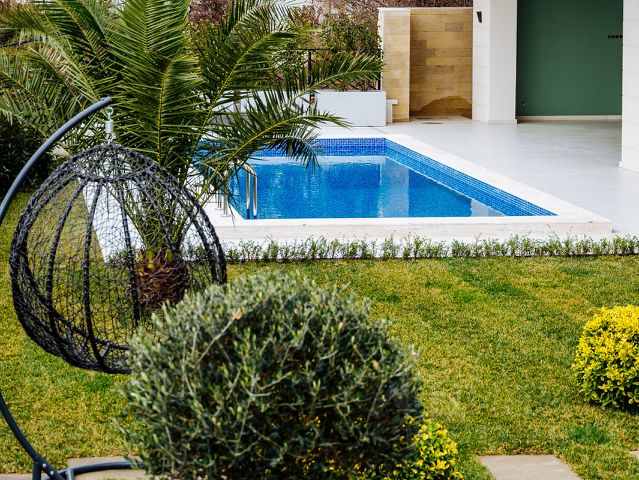 Дом находится рядом с комплексом Дагомыс, который предлагает разнообразные удобства, включая банный комплекс, девять ресторанов, бассейны, прогулочные зоны и собственный пляж. Площадь дома составляет 355 квадратных метров, а участок земли — 9 соток. Он был зарегистрирован в 2018 году и имеет прямой вид на море. На первом этаже расположены кухня-гостиная, ванная комната, гостевая комната и открытая зона для телевизора. На втором этаже находятся три спальни, ванная комната и одна хозяйская комната с гардеробной и ванной. Также есть мансардный этаж с высотой 3,2 метра. Все коммуникации центральные: газ, электричество и вода, а также имеется собственная скважина. Газовые котлы Baxi уже установлены и подключены. В доме есть гараж на два автомобиля с роллетными ставнями, из которого можно пройти в дом. На придомовой территории также предусмотрены парковочные места. В доме имеются две большие террасы, выходящие со второго этажа, которые можно использовать по желанию. Зона для барбекю оборудована водопроводом и газом, а также установлена ротанговая мебель. Бассейн размером 8,5 на 3,5 метра имеет систему фильтрации, очистки и подогрева, а также техпомещение и шезлонги для отдыха. Уличное освещение полностью установлено вокруг дома и вдоль дороги, а входная группа освещена. Ландшафтное озеленение включает пальмы, оливы, камелии, бересклеты, кипарисы и рулонный газон, а также автоматическую систему полива с датчиком дождя. Ворота на пульте управления автоматические и откатные.