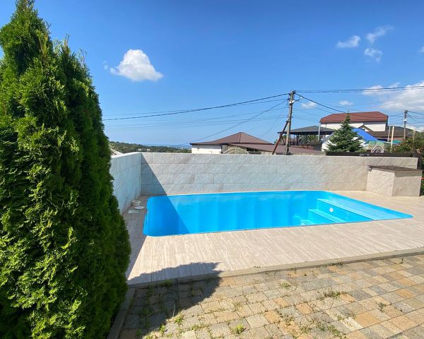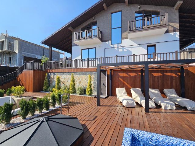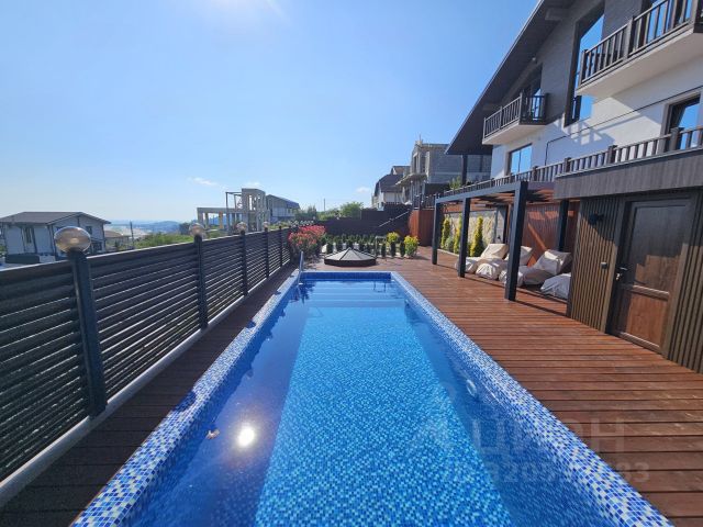 Дом с кедровой сауной и подогреваемым бассейном в закрытом коттеджном поселке, в тихом и живописном районе Сочи, улица Владимировская. Количество спальных комнат - 3. Количество санузлов - 3. 1-й этаж: кухня-гостиная с выходом к бассейну с подогревом, подсветкой и искусственным течением, санузел с душем и выходом к бассейну, сауна с отделкой канадским кедром и гималайской солью, спилом можжевельника, гардеробная, котельная, теплый пол по периметру. 2-й этаж: мастер-спальня с выходом на балкон, детская спальня, гостевая спальня со своим санузлом, общий санузел с отдельно стоящей ванной, душем, гардеробная, теплый пол по периметру. При выходе на эксплуатируемую кровлю - комната отдыха. Эксплуатируемая кровля 100 метров с потрясающим видом на горы и море. В доме есть все необходимое: Wi-Fi, телевизоры, кондиционеры; кухня, оборудованная холодильником, плитой, духовым шкафом, микроволновой печью, широкой посудомоечной машиной, кофеваркой, чайником, тостером, посудой, столовыми приборами; стиральная машина, фен, утюг, гладильная доска, постельные принадлежности, полотенца. Вся мебель выполнена по индивидуальному эскизу. На территории выполнен ландшафтный дизайн, зона отдыха у бассейна с лежаками, плетенной круглой кроватью, иной мебелью, зона барбекю. Удобное расположение: до пляжа Сириус, Олимпийского парка и моря шумных развлечений -15 минут на машине, Красная Поляна - 30 минут, в шаговой доступности магазин Пятерочка, автобусная остановка, пункты выдачи Ozon, Wildberries. Купить дом на море в селе Черешня Краснодарского края.
