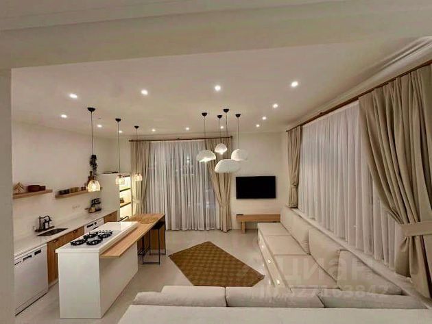 Дом просторный, зал 40 квадратов с 4х-метровыми потолками, спальни по 18 квадратов, большая кухня - гостиная с выходом на террасу и видом на море. Рядом с домом - крытый навес площадью 20кв.м