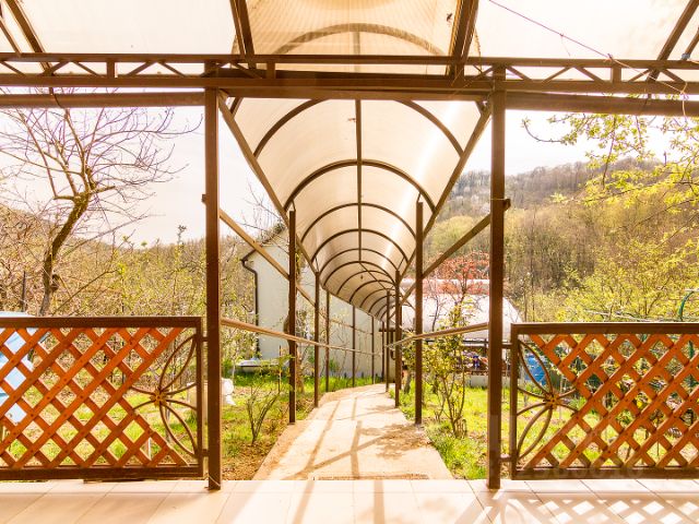 — 8 дизайнерских, видовых коттеджей по 40 , 60 и 85 м² оснащенных системой умный дом, укомплектованных мебелью, техникой и принадлежностями, включая джакузи с подогревом на террасе с видом на горы.