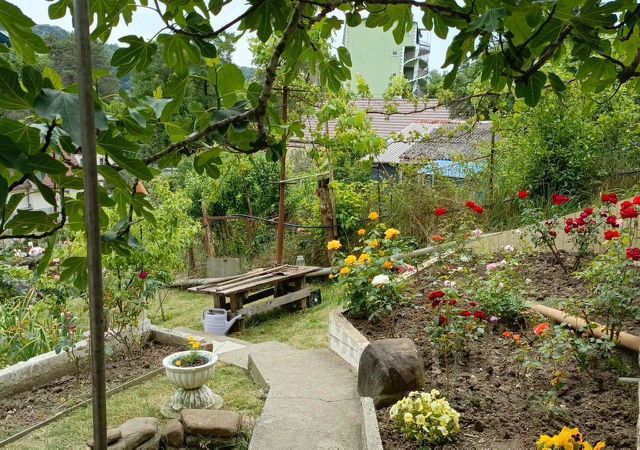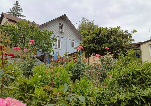 Земля в собственности 5 соток, рельеф не ровный, есть "волшебный сад" с фруктовыми деревьями (цитрусы, хурма, гранат, фейхоа, лавровое дерево, яблони, черешни, виноград...), пальмы; растёт лаванда, мята, чебрец, мелисса - для вкуснейшего целебного чая....