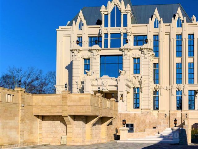 Состоит из семи отдельно стоящих строений, общей площадью 3167,2 кв.м., расположенных на 0,48 га огороженного земельного участка: основной жилой дом (4 эт.) - 1 079,2 кв.м.; одноэтажный дом - 128,9 кв.м.; кинозал и биллиардная на первом уровне, на втором два отдельно стоящих бунгало (637,3 кв.м.); банно-спортивный комплекс на первом уровне, на втором обустроенная всем закрытая терраса (816,3 кв.м.); кухонно-хозяйственный блок на первом уровне, на втором - обустроенная всем закрытая терраса (395,9 кв.м.); двухэтажный дом для контроля входа на резиденцию (109,6 кв.м.). Помещения мебилированы.