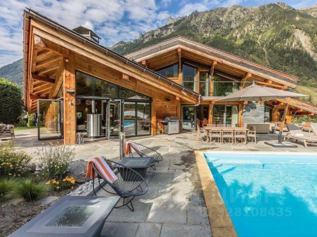 Современный дом с большим панорамными окнами с красивыми видами на шикарном