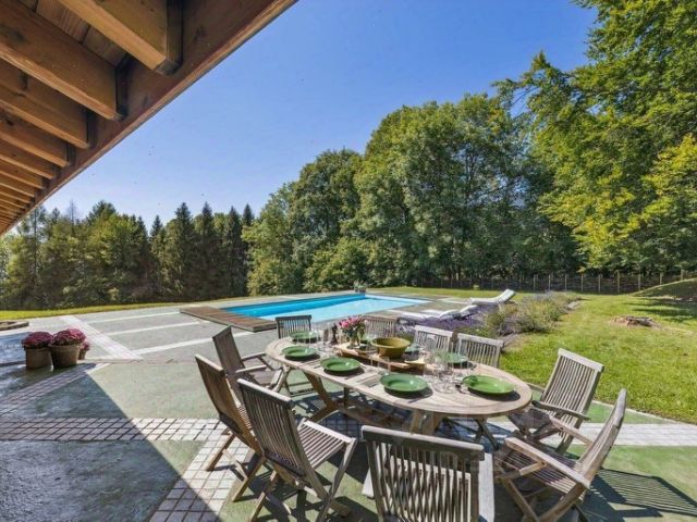 Дизайн дома выполнен французским декоратором, покраска и патинирование стен, дверей , потолка, мебель приобреталась на антикварных рынках Парижа, в доме 7 спален со своими санузлами, 2 камина, бильярдная, хамам, подогреваемый бассейн, бар, летний кинотеатр, спутниковое телевидение.