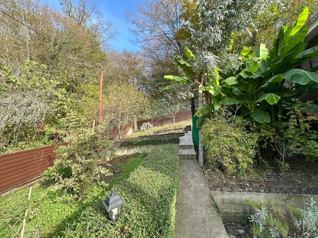 Первый этаж: кухня-гостиная, зал, кладовые. Большая терраса с видом на море, город, лес. Летняя кухня, качели, беседка. Баня с дровяной печью-камином, душевая, туалет.