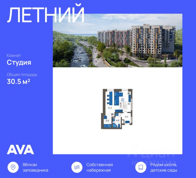 Продается 1-комнатная квартира в доме (Литер 3), Преимущества квартиры: совмещённый санузел, балкон, smart квартира, срок сдачи : 2 кв. 2024, общей площадью 37.9 кв.м., на 7 этаже. Без отделки, но с возможностью заказать отделку Жилой комплекс "Летний" расположен в ущелье реки Кудепста. В пешей минутной доступности детские сады и школы. Удобный выезд к железнодорожному вокзалу и аэропорту. За 15 минут можно доехать до Олимпийского парка. ЖК Летний - это комплексная застройка из семи 12-этажных домов, который находится в долине реки Кудепста, с собственной набережной, видом из окон на море и горы, многоуровневым паркингом с эксплуатируемой кровлей, современными детскими и спортивными площадками. Рядом расположен заповедник, где берут начало туристические тропы на самые красивые водопады региона, единственная в России тисо-самшитовая роща. • 5 минут на машине до моря • 10 минут до центра Сочи • 10 минут до центра Адлера • 15 минут пешком до школы • 5 минут пешком Пятерочка в пешей доступности магазины и точки бытового обслуживания • 10 минут пешком до конного клуба Верхом по Сочи, где начинаются прогулочные маршруты по достопримечательностям долины реки Кудепста на лошадях или пешком • Варианты оплаты: рассрочка, стандартная ипотека, военная ипотека, ипотека без первоначального взноса, материнский капитал Торопитесь купить квартиру по выгодной цене на стадии строительства! Помните, что с каждым возведенным этажом увеличивается цена квартиры! #24Maf7
