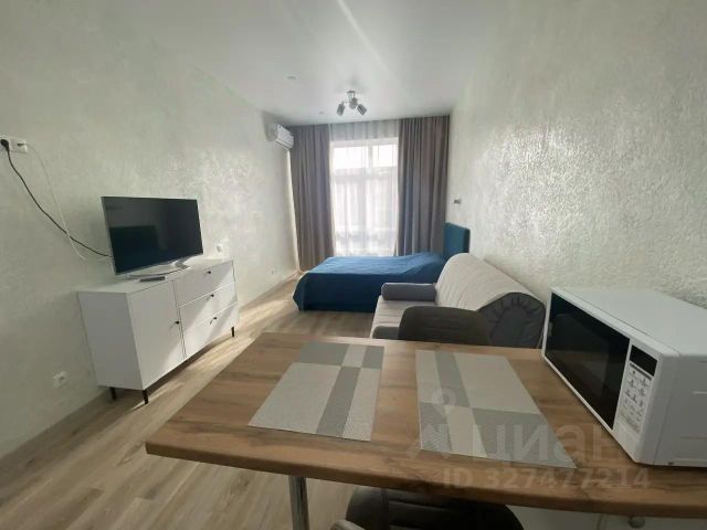 Студия с дизайнерским ремонтом. Высокие потолки, полностью укомплектована мебелью и техникой. Не требует ремонта, готова к заезду. Так же подойдет для посуточной/долгосрочной сдачи в аренду. На огороженной территории дома есть игровая площадка, места отдыха, парковка. В подъезде постоянно дежурит консьерж. Рядом есть небольшой торговый центр, магазин Пятерочка, ozon, ВБ. До моря 15 минут прогулочным шагом вдоль благоустроенной набережной вдоль реки.