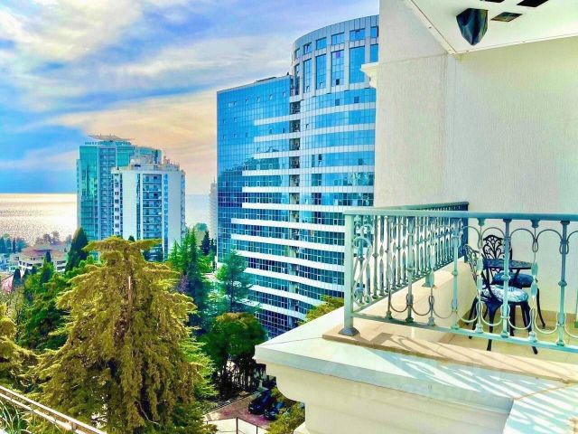 В самом центре Сочи выставлена на продажу просторная квартира с прекрасным видом на морскую гладь. Уникальные апартаменты с панорамным обзором Черноморского побережья расположены в элитном комплексе "Санторини", удобно примыкающем к санаторию "Заполярье" в центральной части Сочи. Закрытая, охраняемая территория с собственным пляжем, тишина и непосредственная близость ко всем ключевым объектам инфраструктуры делают эту недвижимость настоящим сокровищем на побережье. Идеальное местоположение обеспечивает быстрый доступ как в центр города, так и к основным достопримечательностям. Элегантная планировка и отделка премиум-класса. Апартаменты включают в себя две спальни, каждая из которых имеет свою ванную комнату и выход на обширную террасу, откуда открывается завораживающий вид на морские горизонты. Изолированная кухня и просторная гостиная с витражными окнами образуют комфортабельную жилую зону. В квартире выполнен эксклюзивный ремонт уровня "Deluxe" с использованием материалов высочайшего качества. Вся встроенная техника от ведущих немецких брендов, а мебель изготовлена в Италии, и все это остается в распоряжении нового хозяина. Высококлассный сервис и безупречная юридическая чистота. Единственный собственник, отсутствие каких-либо залогов, полный пакет документов готов для заключения сделки.