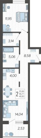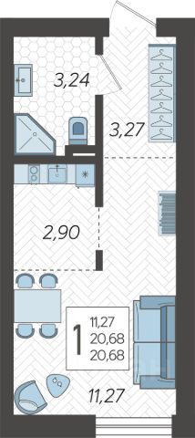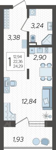 Продаётся однушка, с комнатой поделенной на две зоны. С центральными коммуникациями, без проблем с отключениями.