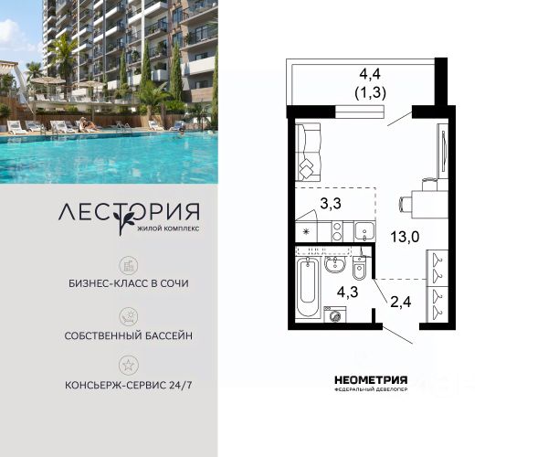 Продается студия в доме (Литер 5), Преимущества квартиры: совмещённый санузел, балкон, smart квартира, срок сдачи : 2 кв. 2025, общей площадью 34.3 кв.м., на 1 этаже. Без отделки, но с возможностью заказать отделку Жилой комплекс "Летний" расположен в ущелье реки Кудепста. В пешей минутной доступности детские сады и школы. Удобный выезд к железнодорожному вокзалу и аэропорту. За 15 минут можно доехать до Олимпийского парка. ЖК Летний - это комплексная застройка из семи 12-этажных домов, который находится в долине реки Кудепста, с собственной набережной, видом из окон на море и горы, многоуровневым паркингом с эксплуатируемой кровлей, современными детскими и спортивными площадками. Рядом расположен заповедник, где берут начало туристические тропы на самые красивые водопады региона, единственная в России тисо-самшитовая роща. • 5 минут на машине до моря • 10 минут до центра Сочи • 10 минут до центра Адлера • 15 минут пешком до школы • 5 минут пешком Пятерочка в пешей доступности магазины и точки бытового обслуживания • 10 минут пешком до конного клуба Верхом по Сочи, где начинаются прогулочные маршруты по достопримечательностям долины реки Кудепста на лошадях или пешком • Варианты оплаты: рассрочка, стандартная ипотека, военная ипотека, ипотека без первоначального взноса, материнский капитал Торопитесь купить квартиру по выгодной цене на стадии строительства! Помните, что с каждым возведенным этажом увеличивается цена квартиры! #zSOfBf