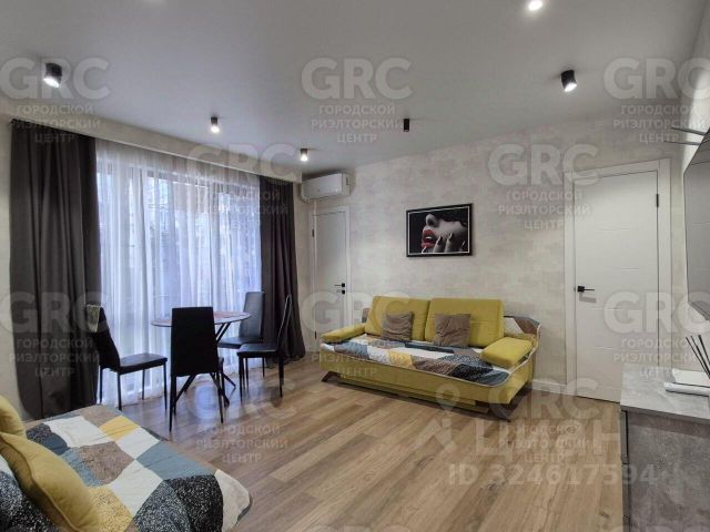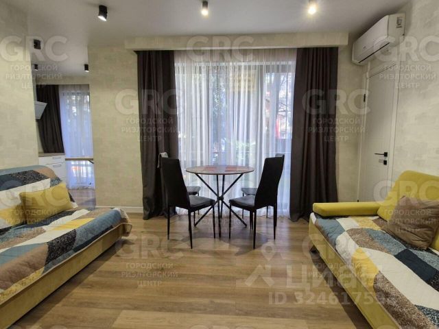 Предлагаем вам квартиру-студию, 24 кв.м. - оооочень уютную, с новым ремонтом в дизайнерском стиле. На первом этаже трехэтажного отеля. Установлен кодовый замок. Отдельный санузел, кухонная зона, балкон с ротанговой мебелью в окружении реликтовых хвойных деревьев. Теплый пол во всей квартире, в том числе санузле. В студии есть все необходимое для комфортного проживания!!! Кондиционер, двуспальная кровать с ортопедическим матрацем, полотенца и постельные принадлежности, раскладывающееся кресло-кровать,интернет, холодильник, микроволновая печь, варочная панель, электрочайник, вся необходимая посуда, утюг, фен, гладильная доска, шкаф для вещей, зеркало, стиральная машина, водонагреватель, просторная душевая. Окна выходят во внутренний двор. Весь комплекс окружен реликтовыми хвойными деревьями. Во дворе бассейн и детская площадка.