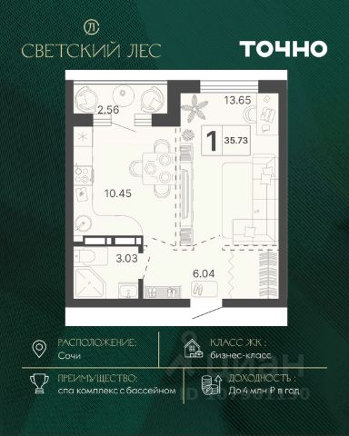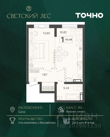 Жилой комплекс состоит из 7 домов переменной этажности от 11 до 20 этажей. В холлах и вестибюлях выполнена дизайнерская отделка, установлены скоростные лифты. На 1 этажах расположены зоны ожидания и колясочные. В проекте предложено множество планировочных решений: в наличии квартиры классического типа. Сдаются они с подчистовой отделкой, панорамными окнами и высотой потолков в 3м. Некоторые квартиры имеют вид на лесной массив и горы. На закрытой территории комплекса выполнен ландшафтный дизайн, установлены безопасные детские площадки для детей всех возрастов, места для отдыха, зоны барбекю с беседками, спортивные площадки, установлен открытый бассейн. На территории также оборудована своя набережная протяженностью в 1,2км. Для владельцев автомобилей предусмотрен отдельный многоуровневый паркинг. Жилой комплекс располагается в активно развивающемся Хостинском районе. В нескольких минутах ходьбы находятся поликлиники, школы, детские сады, кинотеатр, магазины и кафе. До центра Сочи можно добраться за 30 минут транспортом.