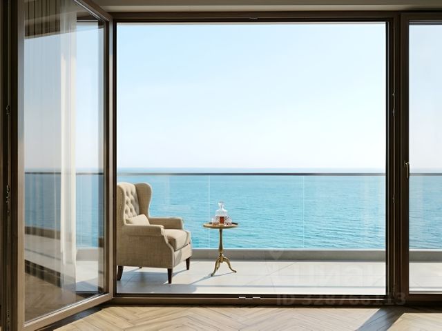 Окна в каждой комнате обеспечивают много света и прекрасные виды. Архитектурная особенность ЖК - легкий излом посередине дома, благодаря которому большинство квартир имеют вид на море .