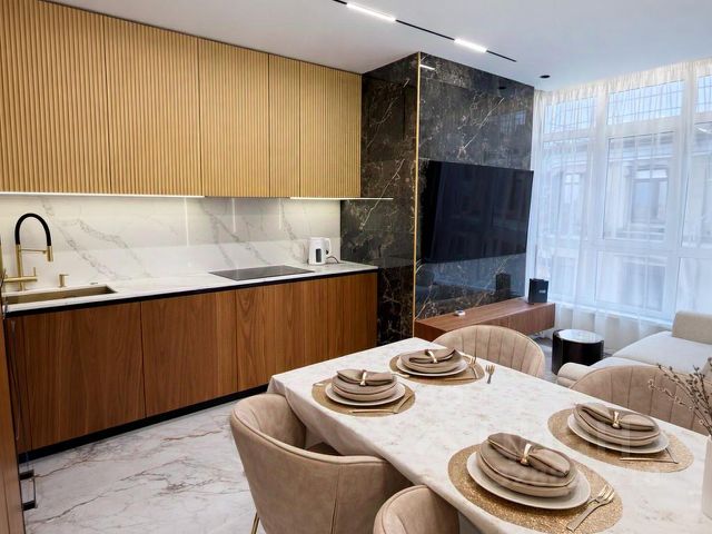 - Квартире сделан дорогой ремонт из премиальных материалов . (Вся плитка Испания, сантехника Италия Paffoni, напольное покрытие Италия, панели и багеты Orac, декор и дверные ручки - латунь. Сделана полная шумоизоляция soundgard (полы, потолок и стены).