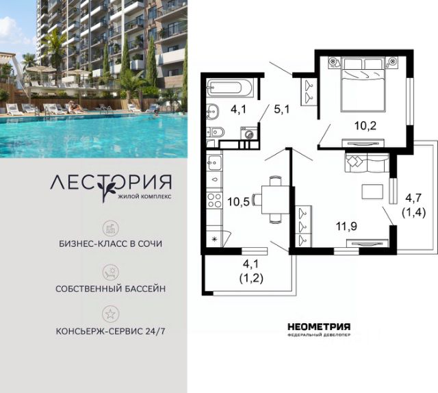 Продается квартира в жилом комплексе бизнес-класса "Лестория". В составе ЖК предусмотрена собственная аквазона площадью 473 квадратных метра с двумя подогреваемыми бассейнами, что соответствуют стандартам бизнес-класса. Аквазона объединяет взрослый и детский бассейны. В welcome-zone к услугам посетителей шезлонги и все необходимые принадлежности. Раздевалки с душевыми комнатами, инфракрасная сауна — здесь все предусмотрено для комфортного отдыха и полного расслабления. Для водного комплекса продуман отдельный вход, оборудованный системой контроля и управления доступом (СКУД). Аквазона только часть уникальной инфраструктуры "Лестории", которая включает в себя также благоустроенную территорию с пятьюдесятью функциональными зонами для прогулок, отдыха и занятий спортом, видовые террасы на крышах для отдыха, работы и встреч с друзьями, а также пространство набережной Кудепсты с шезлонгами и перголами. Жилой комплекс "Лестория" состоит из шести домов высотностью от 15 до 17 этажей, окружённых зеленым массивом национального парка. На придомовой территории для жителей предусмотрены закрытые дворы с круглосуточным видеонаблюдением, активити-центр для детей и подростков, тихие зоны для отдыха и медитации. На крышах домов будут созданы зеленые террасы для наслаждения прекрасными видами на море и горы. В проекте предусмотрены разные варианты отделки квартир под потребности покупателей. Тем, кто хочет воплотить в жизнь собственные интерьерные задумки, подойдут квартиры без ремонта. Для комфортной жизни и отдыха в комплексе будет работать круглосуточный консьерж-сервис уровня 5*, который с легкостью закроет все ежедневные потребности: от заказа продуктов и встречи гостей в аэропорту до выгула и дрессировки питомца. К услугам жителей ЖК "Лестория" — собственная управляющая компания, для инвесторов предоставляются услуги доверительного управления. #ztOs2b