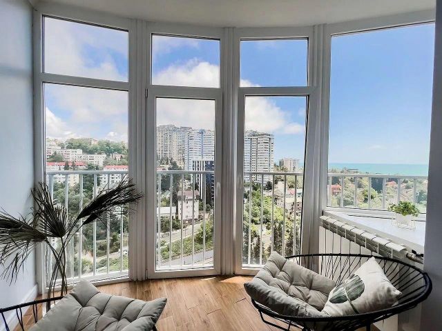 Роскошная панорамная квартира в самом сердце Сочи, в ЖК Метрополь! Предлагаем вам эксклюзивную квартиру с захватывающими видами на море, парк Дендрарий и город. Наслаждайтесь панорамой днем и звездным небом ночью! Особенности квартиры: Полностью панорамные окна с алюминиевым профилем. Удачная планировка: кухня, гостиная, выделенная спальня, балкон, гардеробная. Продумана каждая деталь, новый дизайнерский ремонт, использованы дорогая мебель и техника. Высокие потолки, добавляющие простора и света. Преимущества расположения и комплекса: - Всего 450 метров до морского побережья через парковую зону. - Закрытый охраняемый двор с видеонаблюдением. - Эксплуатируемая крыша с бассейнами-инфинити, зонами отдыха и спа-зонами. Детские и спортивные площадки на территории. Этот объект создан для тех, кто ценит комфорт, эксклюзивность, уют и безопасность. С удовольствием покажем вам эту квартиру, она не оставит вас равнодушным!