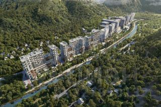 Жилой комплекс состоит из 7 домов переменной этажности от 11 до 20 этажей. В холлах и вестибюлях выполнена дизайнерская отделка, установлены скоростные лифты. На 1 этажах расположены зоны ожидания и колясочные. В проекте предложено множество планировочных решений: в наличии квартиры классического типа. Сдаются они с подчистовой отделкой, панорамными окнами и высотой потолков в 3м. Некоторые квартиры имеют вид на лесной массив и горы. На закрытой территории комплекса выполнен ландшафтный дизайн, установлены безопасные детские площадки для детей всех возрастов, места для отдыха, зоны барбекю с беседками, спортивные площадки, установлен открытый бассейн. На территории также оборудована своя набережная протяженностью в 1,2км. Для владельцев автомобилей предусмотрен отдельный многоуровневый паркинг. Жилой комплекс располагается в активно развивающемся Хостинском районе. В нескольких минутах ходьбы находятся поликлиники, школы, детские сады, кинотеатр, магазины и кафе. До центра Сочи можно добраться за 30 минут транспортом.