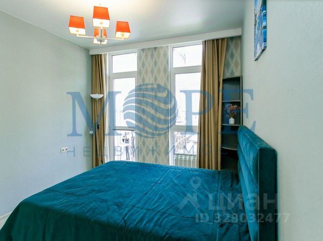 Высокий этаж,шикарный вид из окон на море ,пальмы и сосны.Отсутствие соседей над головой.