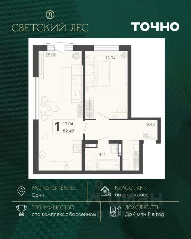 Жилой комплекс состоит из 7 домов переменной этажности от 11 до 20 этажей. В холлах и вестибюлях выполнена дизайнерская отделка, установлены скоростные лифты. На 1 этажах расположены зоны ожидания и колясочные. В проекте предложено множество планировочных решений: в наличии квартиры классического типа. Сдаются они с подчистовой отделкой, панорамными окнами и высотой потолков в 3м. Некоторые квартиры имеют вид на лесной массив и горы. На закрытой территории комплекса выполнен ландшафтный дизайн, установлены безопасные детские площадки для детей всех возрастов, места для отдыха, зоны барбекю с беседками, спортивные площадки, установлен открытый бассейн. На территории также оборудована своя набережная протяженностью в 1,2км. Для владельцев автомобилей предусмотрен отдельный многоуровневый паркинг. Жилой комплекс располагается в активно развивающемся Хостинском районе. В нескольких минутах ходьбы находятся поликлиники, школы, детские сады, кинотеатр, магазины и кафе. До центра Сочи можно добраться за 30 минут транспортом.