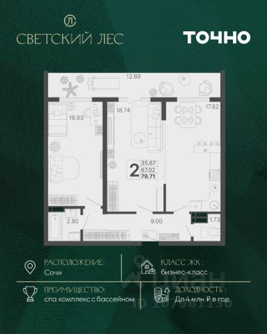 Эта квартира станет отличным выбором для тех, кто ценит комфорт, удобство расположения и качество жизни или же может стать прекрасной инвестицией для сдачи квартиры в аренду в одном из лучших курортных городов России.