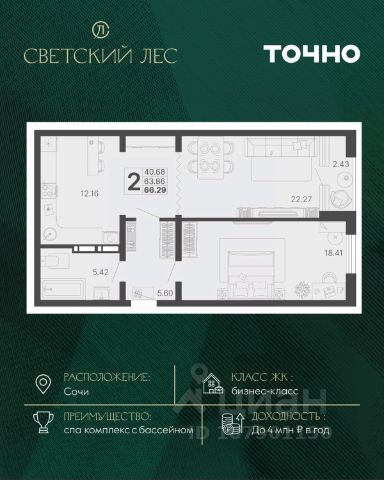 Жилой комплекс состоит из 7 домов переменной этажности от 11 до 20 этажей. В холлах и вестибюлях выполнена дизайнерская отделка, установлены скоростные лифты. На 1 этажах расположены зоны ожидания и колясочные. В проекте предложено множество планировочных решений: в наличии квартиры классического типа. Сдаются они с подчистовой отделкой, панорамными окнами и высотой потолков в 3м. Некоторые квартиры имеют вид на лесной массив и горы. На закрытой территории комплекса выполнен ландшафтный дизайн, установлены безопасные детские площадки для детей всех возрастов, места для отдыха, зоны барбекю с беседками, спортивные площадки, установлен открытый бассейн. На территории также оборудована своя набережная протяженностью в 1,2км. Для владельцев автомобилей предусмотрен отдельный многоуровневый паркинг. Жилой комплекс располагается в активно развивающемся Хостинском районе. В нескольких минутах ходьбы находятся поликлиники, школы, детские сады, кинотеатр, магазины и кафе. До центра Сочи можно добраться за 30 минут транспортом.