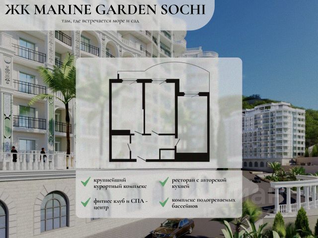 В продаже 3-комнатная квартира, площадью 67.3, расположенная Литер 5 жилого комплекса бизнес-класса "Кислород". Комплекс от девелопера AVA находится в Сочи, на северном склоне горы Бытха, в 7 минутах езды от центра города.