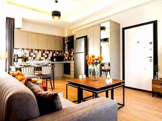 В комплексе представлены студии и апартаменты с 1-3 спальнями площадью от 49 до 149 кв. м. Все помещения передаются с чистовой отделкой: паркет из техномассива, мрамор в санузлах, окрашенные стены и потолки, межкомнатные двери со шпоном натурального дерева.