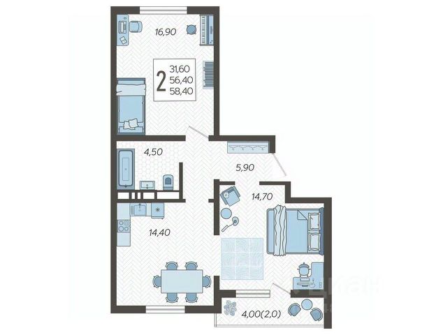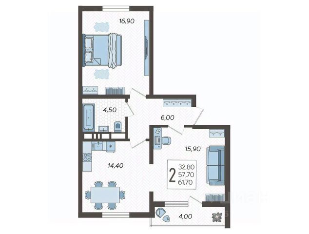 Видовые квартиры с окнами на три стороны света и семейные форматы с тремя спальнями, двумя ванными и отдельной кухней;
