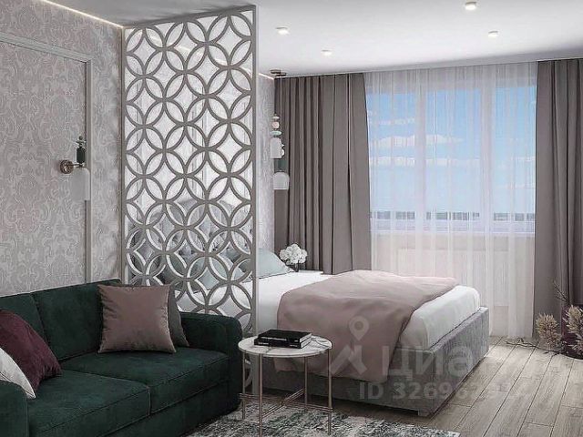 Квартира расположена на 2/5 этажного многоквартирного современного дома, которому меньше 10 лет. Общая площадь 26,3 кв.м., спальня 11,5 кв.м, кухня 9,5 кв.м., с/совм, есть кладовка/гардеробная.