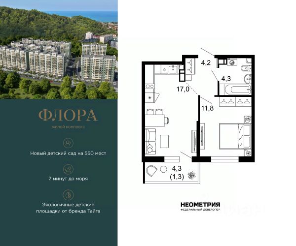 Отличное вложение как для собственного проживания, так и для сдачи в аренду. Данная квартира будет иметь спрос не только в летний сезон, но и в зимний для горнолыжников, поскольку по новой автомагистрали расстояние от Кудепсты до Красной Поляны на машине составит не более 20 минут.