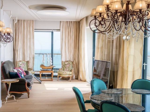 Угловое расположение апартаментов с панорамными окнами дает возможность любоваться одновременно видами моря и гор. Вид бухты морского порта создает романтичную атмосферу, верхний этаж и шумоизоляция обеспечивают комфортную тишину проживания (только одна стена со смежной квартирой). Высокие двери санузла и спальни придают легкость пространству. Удобные группы освещения и подсветок позволяют создавать удобные световые сценарии.