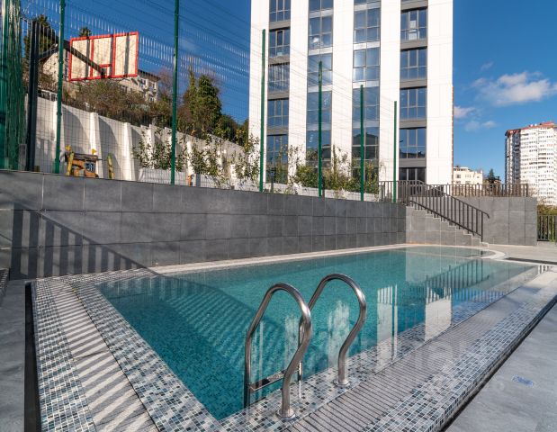 Новая, привлекательная квартира для комфортной жизни. В квартире выполнен качественный ремонт, полностью укомплектована для проживания, что обеспечивает уют и удобство. Большая кухня-гостиная с обеденной зоной, спальня с выходом на балкон и видом на море, а также санузел делают эту квартиру привлекательным вариантом для проживания. Расположение жилого комплекса Романов в спальном районе Центральной части города с близостью к морю и удобной инфраструктурой, такой как детские сады, минимаркеты, школы и остановка общественного транспорта, делает это место еще более привлекательным. Наличие своего бассейна и закрытой парковки добавляет удобства. Если вас заинтересовала эта квартира или вам нужна дополнительная информация, рекомендуется запросить онлайн-показ, связавшись по указанному номеру телефона.