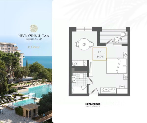Нескучный сад Rsidences la mer — авторский курорт с атмосферой французской Ривьеры, где каждый день как увлекательное путешествие. Курортный комплекс Нескучный сад создан для тех, кто путешествует по миру в поисках идеального места, где можно замедлиться, ощутить жизнь всеми органами чувств, чувствовать заботу и премиальный сервис. Неометрия создала подобное пространство здесь — в сердце Сочи. Премиальный курорт имеет официальный статус пятизвездочного отеля, реализуется по ФЗ-214 с использованием эскроу-счетов. Состоит из многоуровневой приватной территории 4,5 га, пяти садов чувств, уникального парящего променада 1,3 га, ведущего к морю, и собственного концептуального пляжа. Камерная локация Курорт расположен в Адлерском районе Центрального Сочи, между морем и горами. Место выбрано не случайно и подчеркивает ценность замедления в центре динамичной жизни. Чтобы оградить вас от шума и суеты, Нескучный сад скрыт в объятиях реликтового парка. Находясь в сердце золотого треугольника Сочи - 10 минутах до международного аэропорта, 15 минутах до Олимпийского парка и 45 минутах до Горнолыжного курорта Роза Хутор и Красной Поляны, вы получаете долгожданную приватность и ощущение загородной жизни. Прогулка до собственного пляжа - 450 шагов незабываемых ощущений по уникальному парящему променаду между верхушек пицундских сосен и платанов. В вашем распоряжении инфраструктура собственного курорта Каждая деталь в Rsidences la mer продумана и настроена на волну удовольствий: пул концептуальных ресторанов, подогреваемые бассейны, два уровня wellness & SPA, детские плей хабы и развивающий центр, воркауты в окружении зелени и деловой-кластер делают Нескучный сад достойным выбором для самой взыскательной аудитории. Безукоризненный сервис пятизвездочного отеля Попадая в Нескучный сад, ощущаешь себя гостем фешенебельного отеля valet parking, cleaning Focus, деликатный консьерж-сервис освобождает от рутины, фрахтует яхты для морской прогулки, электронно регистрирует ваших гостей, рекомендует лучшие маршруты путешествий для знакомства с аутентичной культурой, локальной гастрономией, легендами и традициями Сочи, забронирует лучший столик в одном из ресторанов. Любимые блюда прямо в вашу резиденцию доставит flashbot робот. Личныи помощник предугадывает желания и заботится о том, чтобы вы отдыхали, а ваши активы росли.