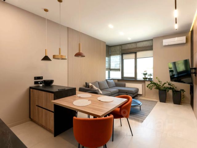 В квартире сделан качественный ремонт. Всё сделано аккуратно. Квартира светлая, тёплая, с хорошей шумоизоляцией. Всё, что внутри, остаётся новому владельцу: мебель (диван, кровать, шкафы, кухонный гарнитур), бытовая техника (холодильник, стиральная машина, варочная панель, духовка, вытяжка, кондиционер) и текстиль.