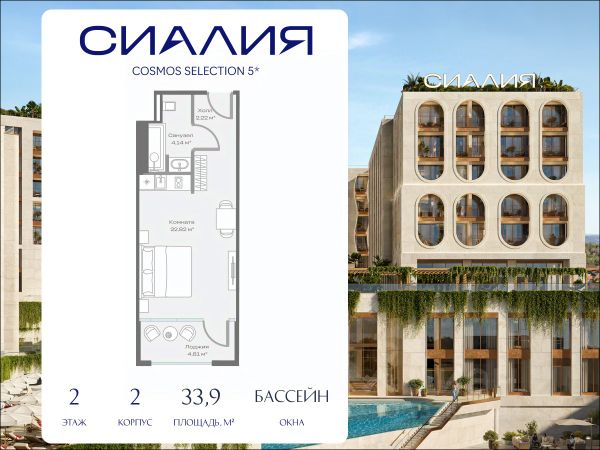 Просторный номер площадью 58.24 м² с панорамными окнами и приватным балконом, вид на бассейн. Дизайн номеров выполнен в современном стиле с использованием натуральных материалов и текстур, что создает ощущение непрерывного диалога с природой. Полностью меблирован, оборудован системой "умный дом", TV, кондиционированием и всем необходимым для комфортного проживания. Возможность реализовать различные сценарии жизни и инвестирования. - Отельные номера в Космос Селекшн Сочи Сиалия Резорт 5* с пассивным доходом до 25,3% годовых и бесплатным проживанием 30 дней в году - Гостиничные резиденции под управлением Космос Селекшн Сочи Сиалия Резорт 5* с возможностью отдыха 365 дней в году СИАЛИЯ - отдых, который становится стилем жизни. Отель расположен в уникальном месте между морем и горами, на территории 4,5 га. На территории: - премиальный SPA и фитнес-центр - медицинский центр с anti-age и longivity-программами - 7 бассейнов, в том числе подогреваемый и бассейн с морской водой, - корты для падел-тенниса - детский клуб - гастрономический кластер из 5 ресторанов и кафе с различными концепциями и 5 баров, - многофункциональный конференц-центр и коворкинг Продается квартира на улице Троицкая в жилом районе Адлер в городе Сочи.