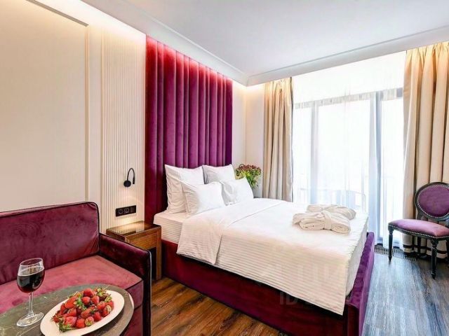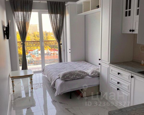 Предлагаем вам квартиру-студию, 24 кв.м. - оооочень уютную, с новым ремонтом в дизайнерском стиле. На первом этаже трехэтажного отеля. Установлен кодовый замок. Отдельный санузел, кухонная зона, балкон с ротанговой мебелью в окружении реликтовых хвойных деревьев. Теплый пол во всей квартире, в том числе санузле. В студии есть все необходимое для комфортного проживания!!! Кондиционер, двуспальная кровать с ортопедическим матрацем, полотенца и постельные принадлежности, раскладывающееся кресло-кровать,интернет, холодильник, микроволновая печь, варочная панель, электрочайник, вся необходимая посуда, утюг, фен, гладильная доска, шкаф для вещей, зеркало, стиральная машина, водонагреватель, просторная душевая. Окна выходят во внутренний двор. Весь комплекс окружен реликтовыми хвойными деревьями. Во дворе бассейн и детская площадка.