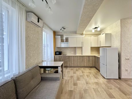 Здесь есть все необходимое для комфортного проживания: качественная мебель и современная техника: удобный эргономичный диван, раскладное кресло, кондиционер, холодильник, плита, СВЧ, телевизор, Wi-Fi, стиральная машина, утюг, полностью укомплектованная кухонная зона. Ванная комната оборудована душевой кабиной и современной сантехникой.