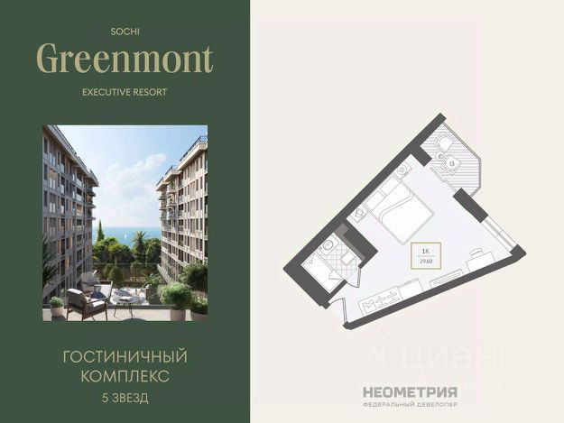 Премиальный курорт имеет официальный статус пятизвездочного отеля, реализуется по ФЗ-214 с использованием эскроу-счетов. Состоит из многоуровневой приватной территории 4,5 га, пяти садов чувств, уникального парящего променада 1,3 га, ведущего к морю, и собственного концептуального пляжа.
