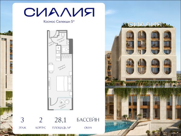 Просторный номер площадью 28.12 м² с панорамными окнами и приватным балконом, вид на бассейн. Дизайн номеров выполнен в современном стиле с использованием натуральных материалов и текстур, что создает ощущение непрерывного диалога с природой. Полностью меблирован, оборудован системой "умный дом", TV, кондиционированием и всем необходимым для комфортного проживания. Возможность реализовать различные сценарии жизни и инвестирования. - Отельные номера в Космос Селекшн Сочи Сиалия Резорт 5* с пассивным доходом до 25,3% годовых и бесплатным проживанием 30 дней в году - Гостиничные резиденции под управлением Космос Селекшн Сочи Сиалия Резорт 5* с возможностью отдыха 365 дней в году СИАЛИЯ - отдых, который становится стилем жизни. Отель расположен в уникальном месте между морем и горами, на территории 4,5 га. На территории: - премиальный SPA и фитнес-центр - медицинский центр с anti-age и longivity-программами - 7 бассейнов, в том числе подогреваемый и бассейн с морской водой, - корты для падел-тенниса - детский клуб - гастрономический кластер из 5 ресторанов и кафе с различными концепциями и 5 баров, - многофункциональный конференц-центр и коворкинг
